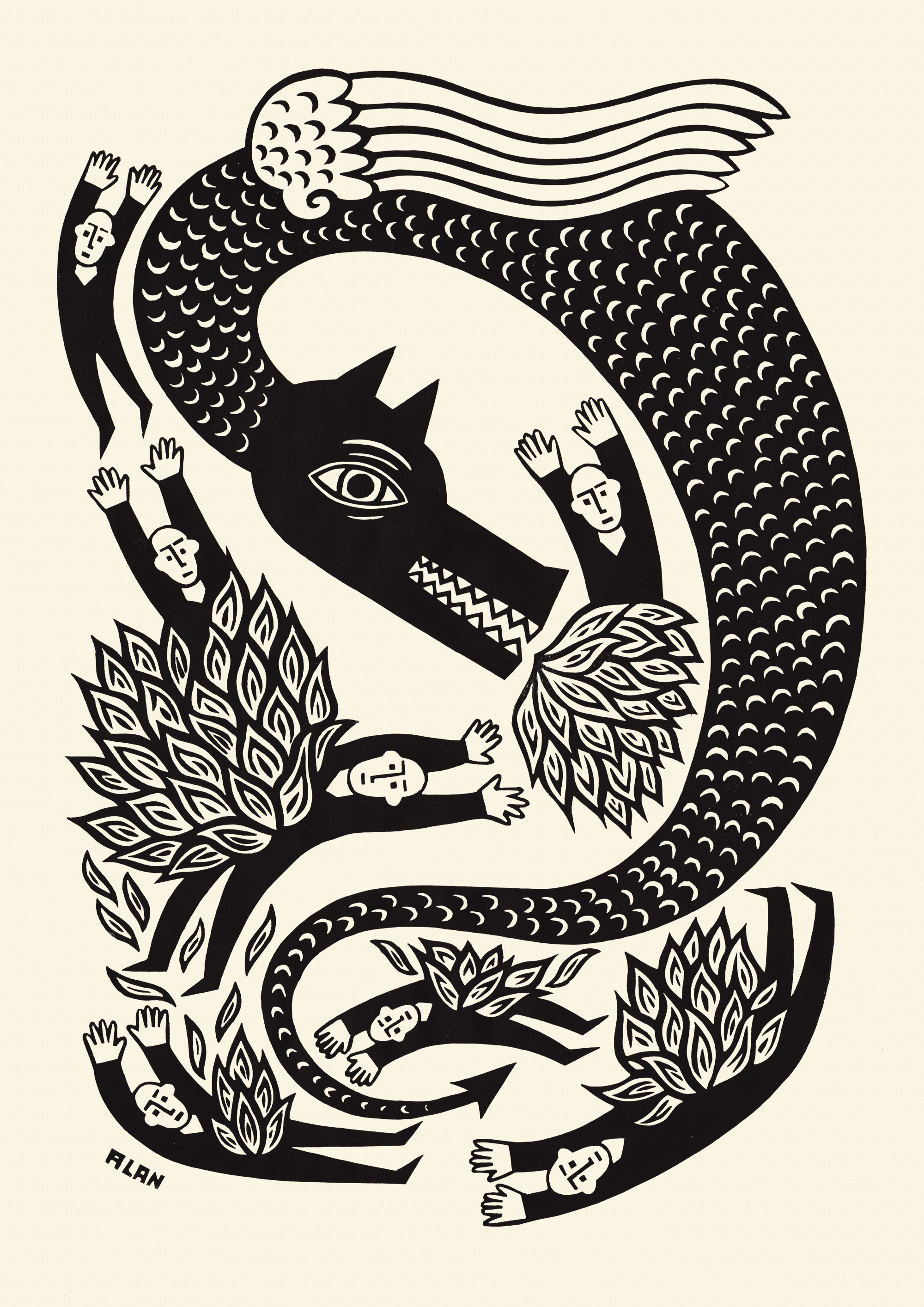 Elements-fire-linocut-by-baggelboy Flight-of-fancy-linocut-by-baggelboy Burning-ambition-linocut-by-baggelboy and the dragon. linocut print